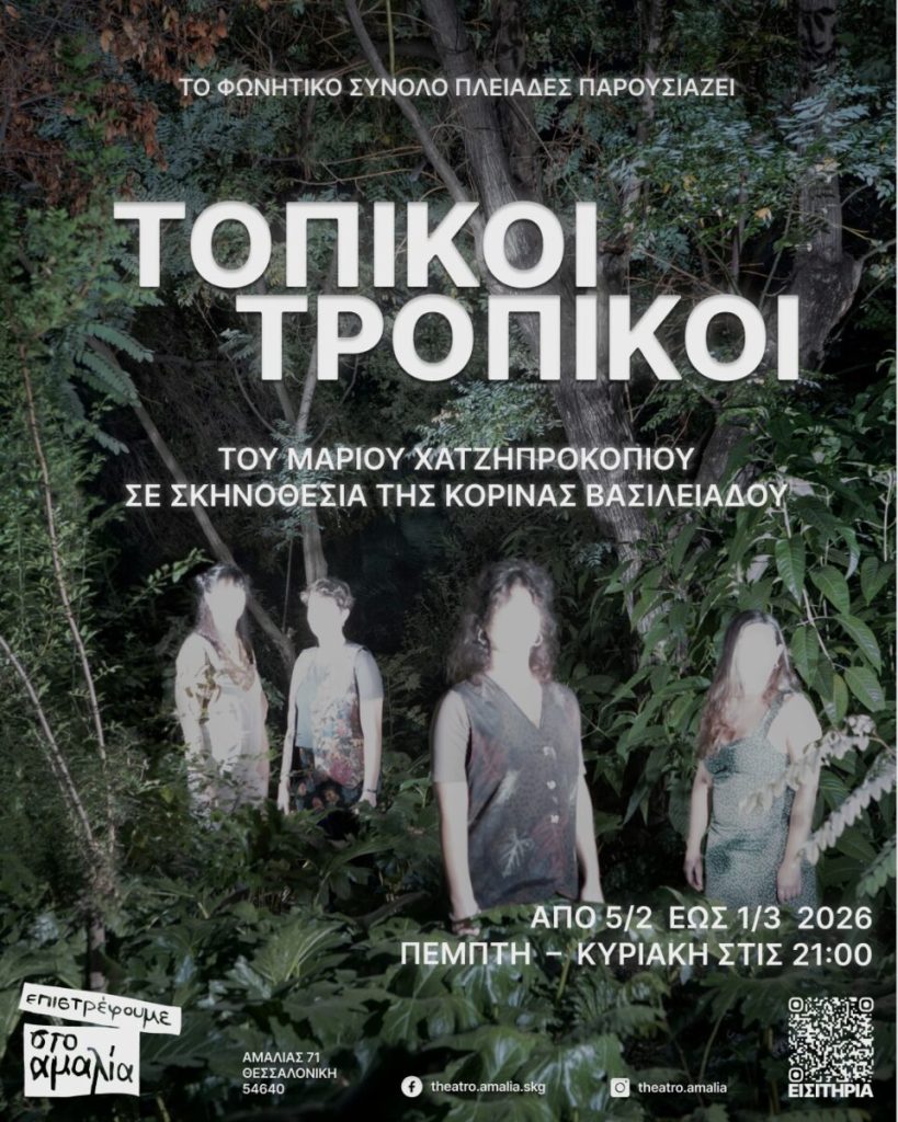 On Saturday, February 28, 2026, shortly before the conclusion of the performances of the play “Topikoi Tropikoi” (Local Tropics) by the Pleiades group (a play based on the book of the same name by Marios Chatziprokopiou), an open dialogue will follow. This dialogue will take place between the audience, the cast and crew of the performance, and Theatrologist and Gestalt psychotherapist in training, Mrs. Katerina Liakou, discussing the themes explored in the play, which are closely connected to the conference’s theme.